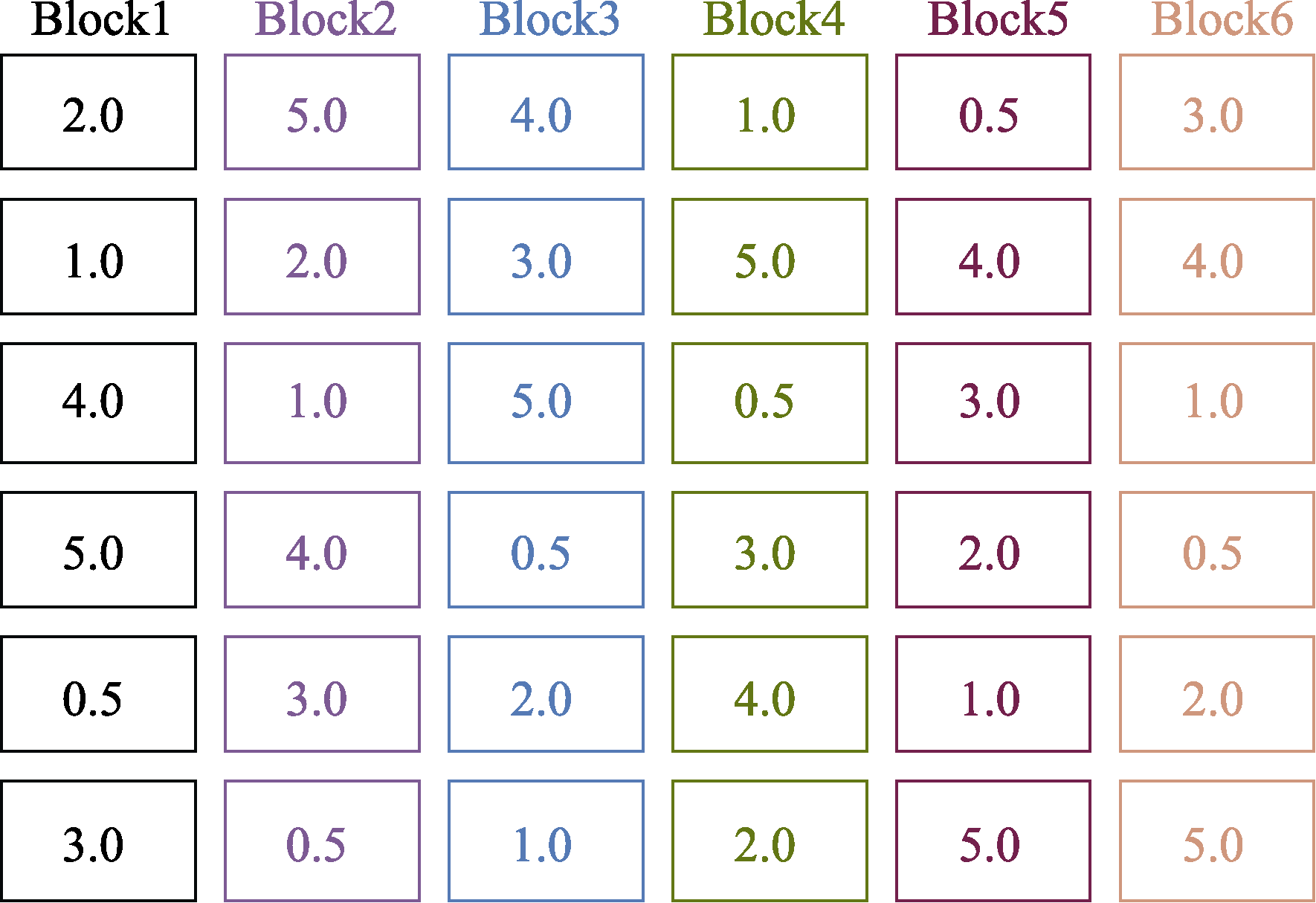 Fig. 1 Experimental design for planting rhizome fragments of Leymus chinensis with different initial lengths. Different numbers indicate the initial lengths of L. chinensis rhizomes buried in the pots (cm).