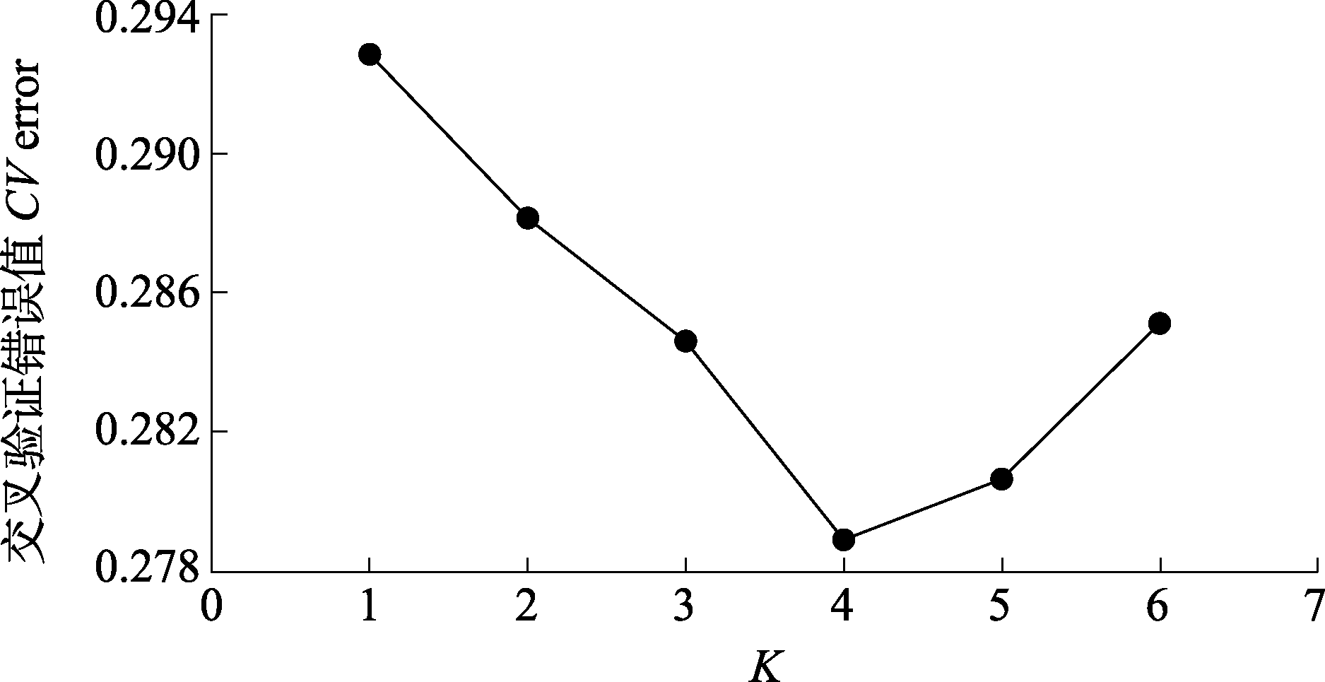 Fig. 1 Estimation of cross-validation errors (CV error) for K values ranging from 1 to 6 of the13 Haloxylon ammodendron populations.