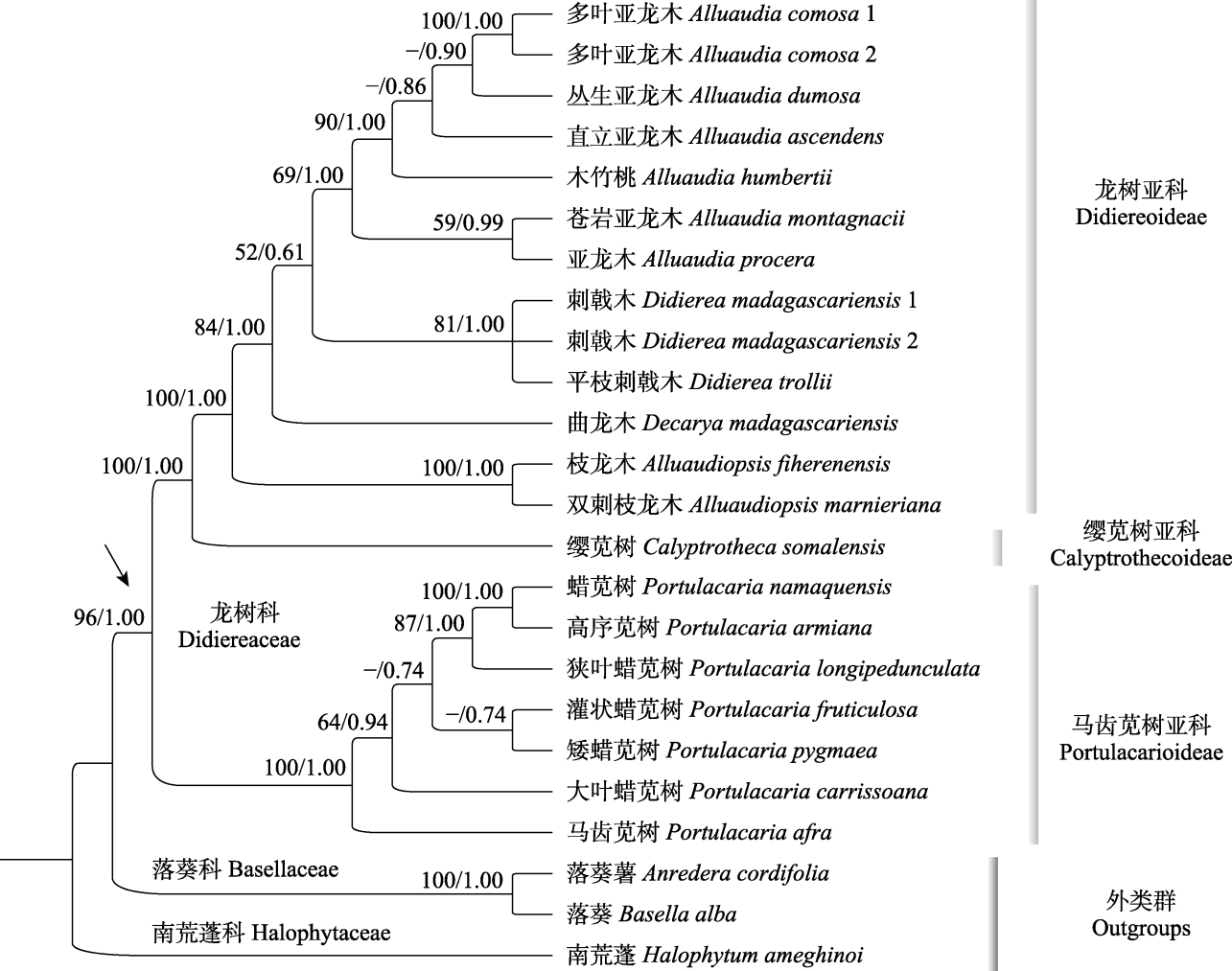 | 龙树属 Didierea | 1 | 2 |