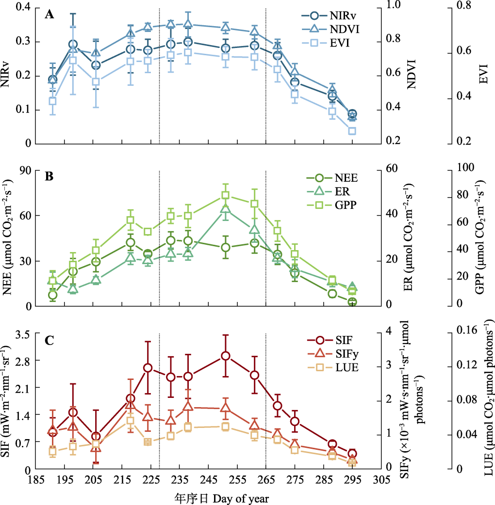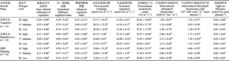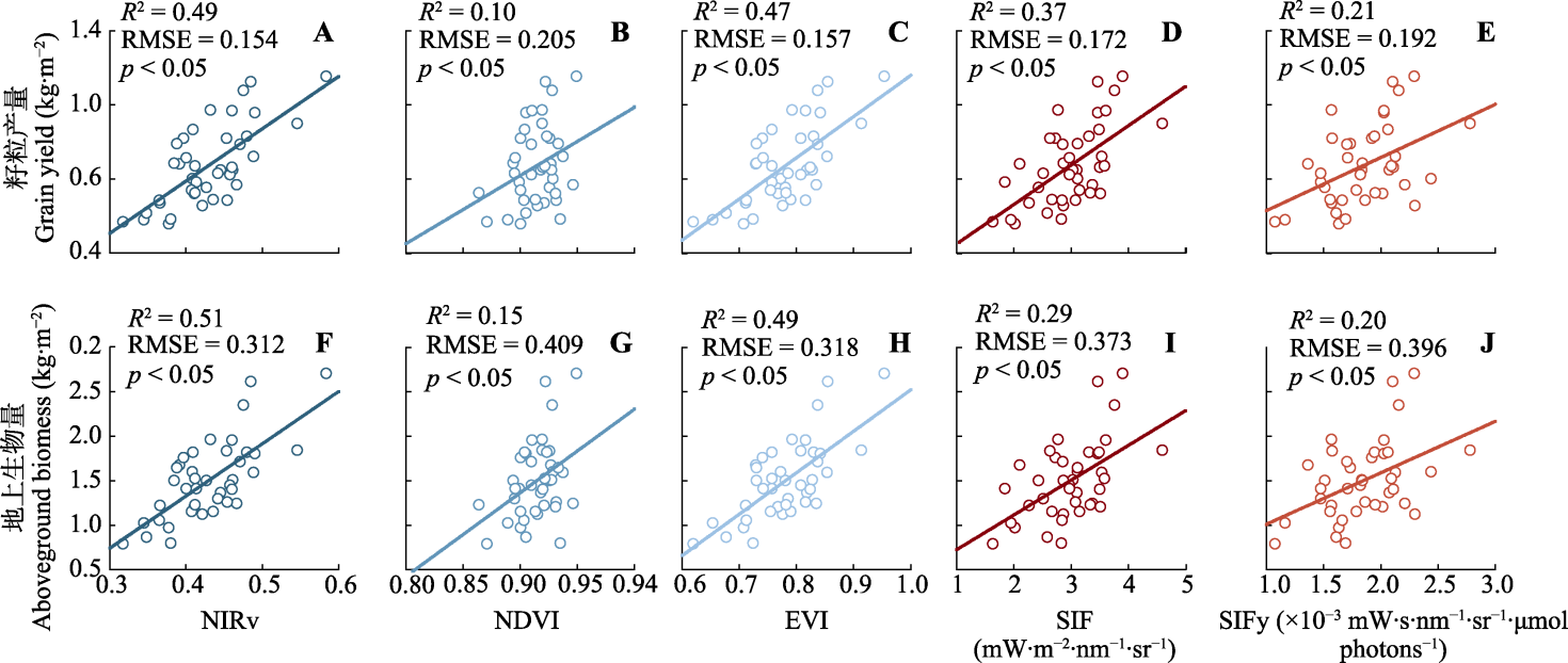 关键词: 植被冠层反射指数, 籽粒产量, 地上生物量, 植被近红外反射率, 日光诱导叶绿素荧光