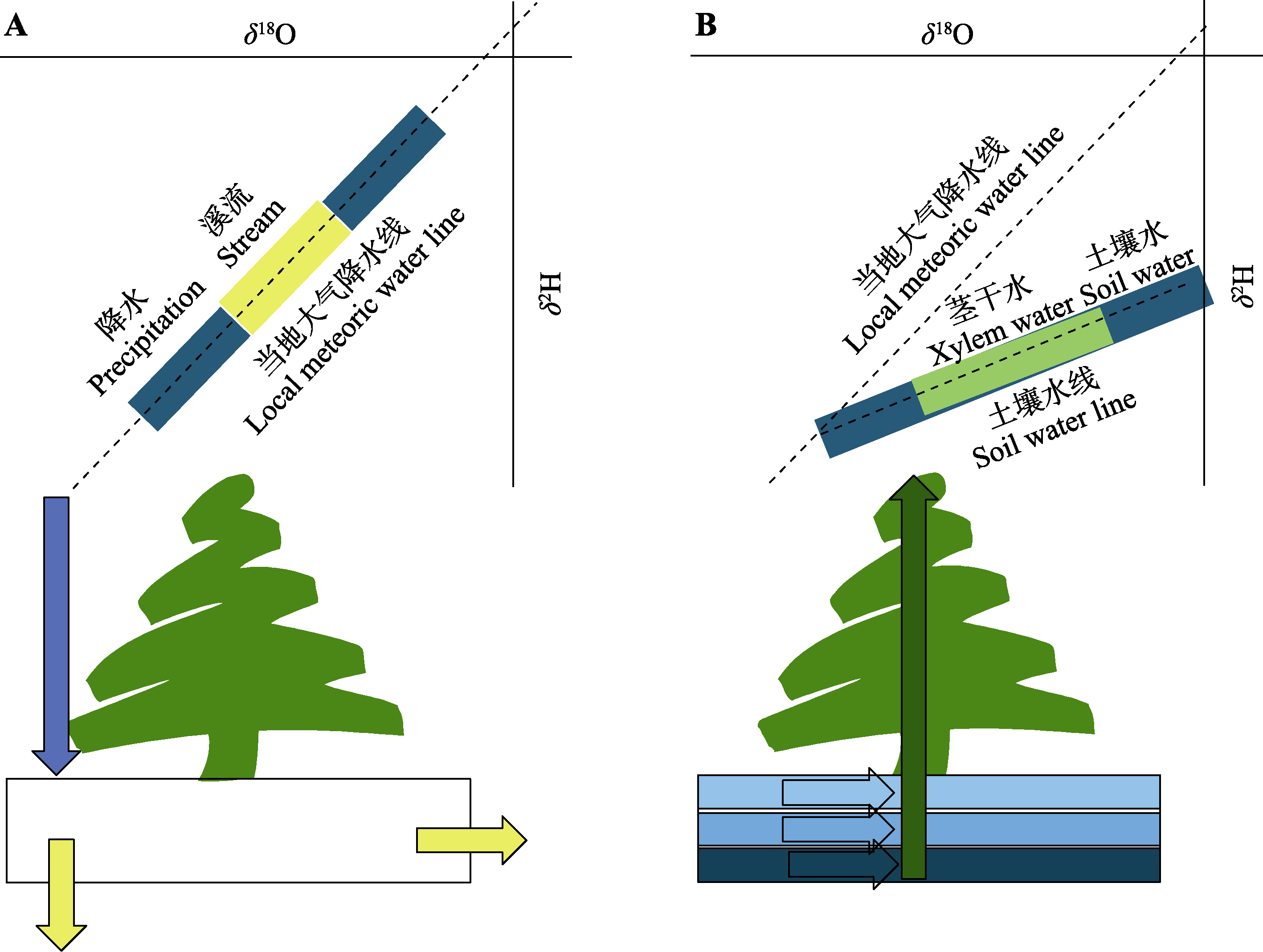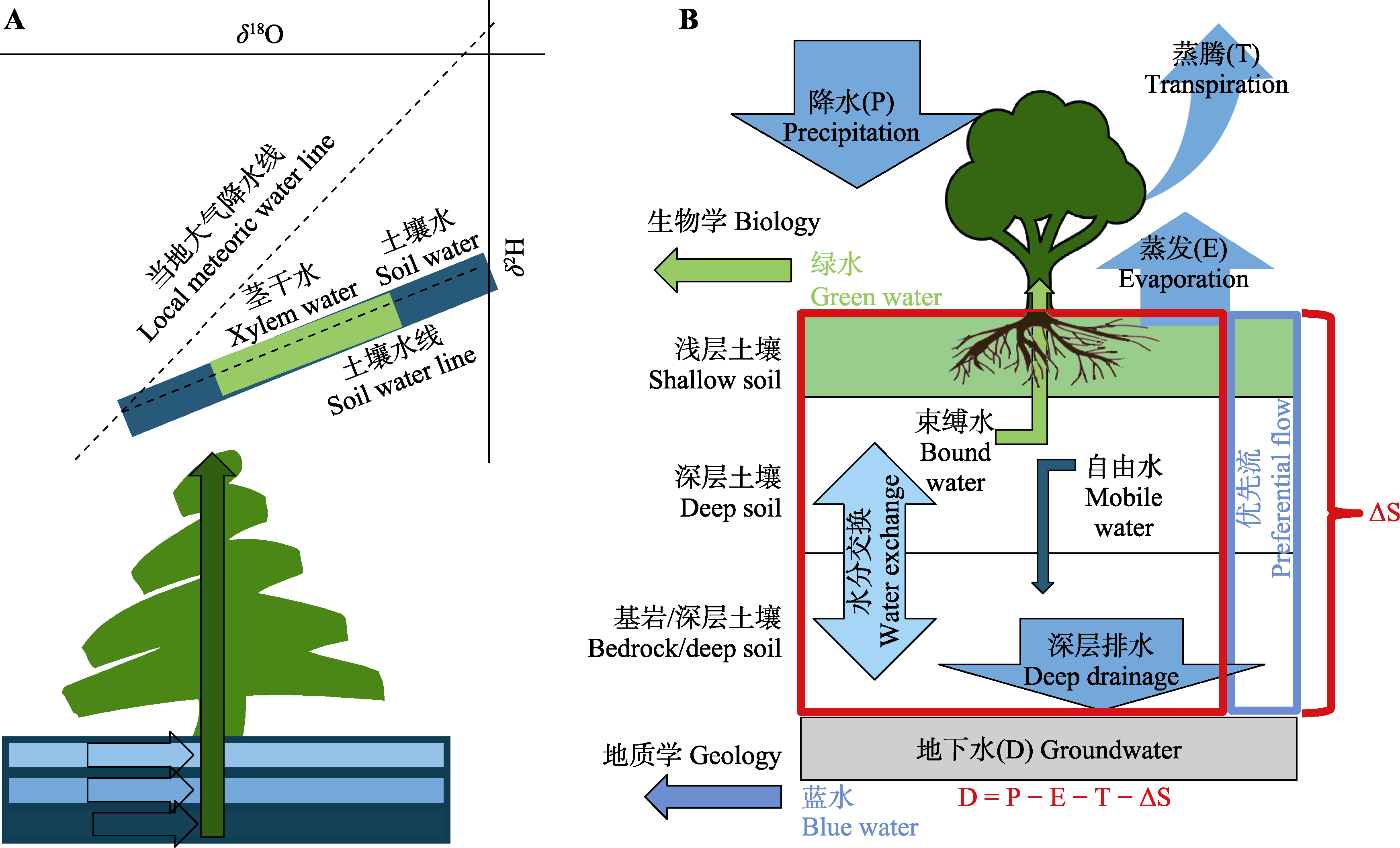 关键词: 生态水文分离, 两水世界假说, 束缚水, 自由水, 稳定同位素, 植物水源判识