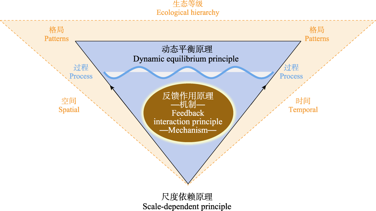 图4 生态学中3个基本原理(尺度依赖、动态平衡与反馈作用)之间的关系。
