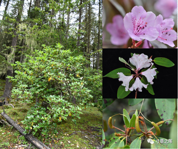 枯鲁杜鹃R. adenosum 野外植株与花、果(王飞摄),该种已收入华西园的账下, 其频危状态将得到彻底缓解!