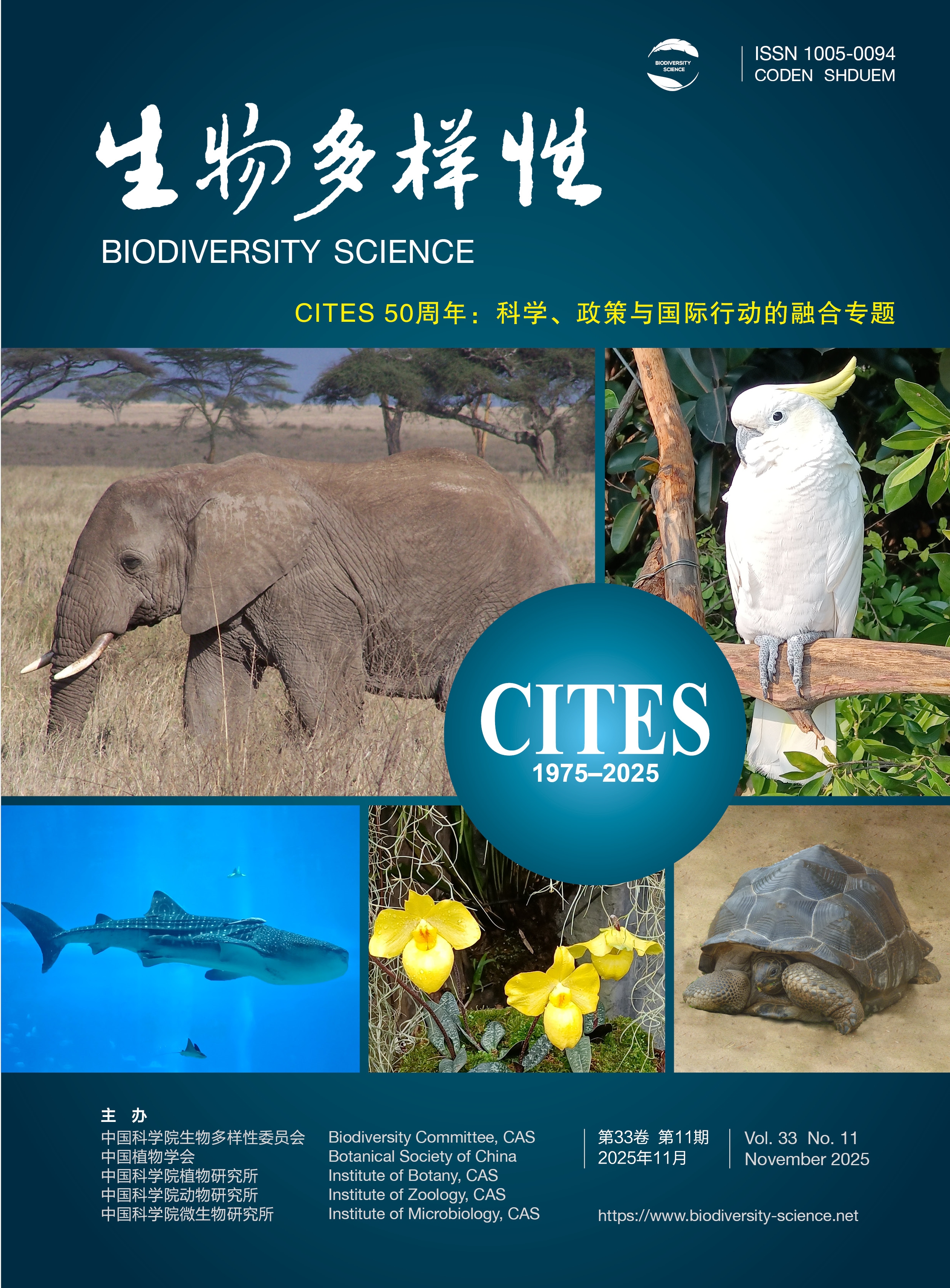 甘松(Nardostachys jatamansi)是青藏高原-喜马拉雅地区特有的珍贵药用植物。近年来, 甘松的需求量和国际贸易量持续增长, 因其资源完全依赖野外采集, 过度采挖、生境破坏和非法贸易等因素使其面临自然种群资源枯竭的风险。然而, 国内甘松资源的储量尚缺乏系统评估, 致使区域内甘松非致危性判定(Non-Detriment Finding, NDF)的核心数据不足, 从而影响国际贸易的出口管理。为此, 本研究选取四川省阿坝州红原县这一甘松主要产区, 在野外调查的基础上, 分析了中生型与湿润型两种生境中甘松的群落结构、生长特征及生物量, 并结合物种分布模型与资源量估算模型, 评估了甘松在该区域的潜在适生区与资源储量。结果显示: 两类生境共记录植物108种, 隶属于77属29科, 群落组成与多样性受土壤总磷含量影响而差异显著, 其中中生型生境物种多样性更高, 甘松根长更长, 且甘松新酮含量更高。物种分布模型模拟结果表明, 其潜在适生区热点集中于麦洼乡, 资源量模型估算显示红原县拥有16,028.26 t的甘松潜在资源量, 呈现北高南低的资源分布格局, 年采挖量约占总潜在资源量的3.12%。本研究通过系统调查与模型模拟, 揭示了甘松主产区的资源现状、空间分布特征与可持续管理的挑战, 同时为高原地区药用植物的就地保护与可持续采集的精准管理提供数据依据, 为《濒危野生动植物种国际贸易公约》(CITES)的贸易非致危性判定, 及相关国家的甘松国际贸易与管理提供了方法学参考。