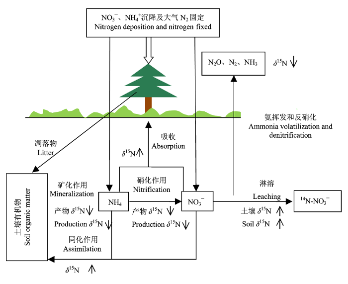 Isotope fraction in the process of nitrogen cycling in forest ecosystem (Reference to Nadelhoffer & Fry, 1994).