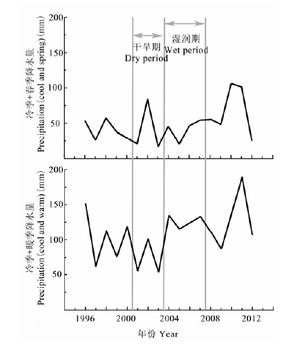 ... ), 且降水的年际年内变异增大, 表现为干湿年份的交替或干湿气候期的交替, 夏季降水减少, 秋冬降水增加, 以及大降水事件出现的频率增加(Weltzin et al., 2003; Li et al., 2015). ...