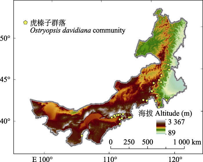 灌丛是指以灌木为优势物种所组成的植被类型, 群落高度一般不超过5 m (中国植被编辑委员会, 1980)。灌丛在资源植物的保育、生物多样性和生态环境的保护以及生态系统功能的维持等方面都起着非常重要的作用(柴永福等, 2019)。山地中生落叶阔叶灌丛是一种分布广、面积大的灌丛植被类型。虎榛子(Ostryopsis davidiana)灌丛作为重要的山地中生落叶阔叶灌丛类型, 广泛分布于我国的华北地区山地, 如内蒙古大兴安岭南部、阴山山脉、贺兰山山地, 山西各山地丘陵、河北北部的山地, 以及西北地区, 如陕北黄土高原(中国植被编辑委员会, 1980; 中国科学院内蒙古宁夏综合考察队, 1985)。虎榛子灌丛在连接森林植被(如蒙古栎(Quercus mongolica)林和山杨(Populus davidiana)林等)和草原植被上发挥重要作用(赵一之, 2019)。