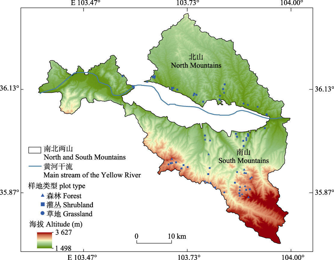 | Fig. 1 Spatial distribution of plant community plots in the northern and southern mountains of Lanzhou. |
